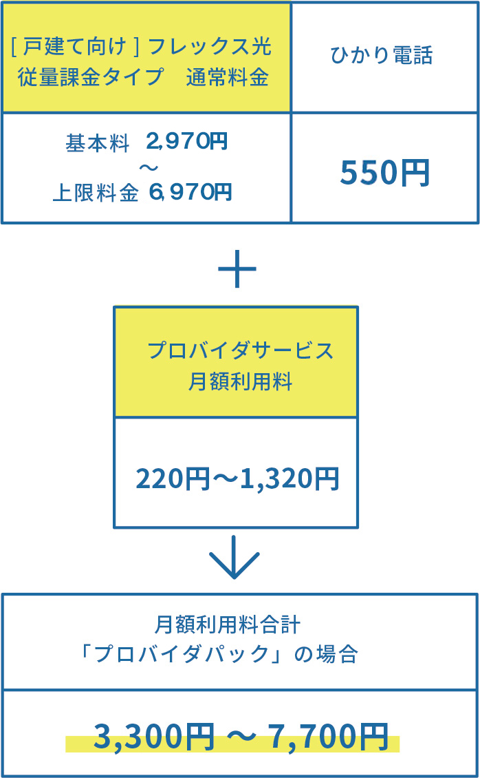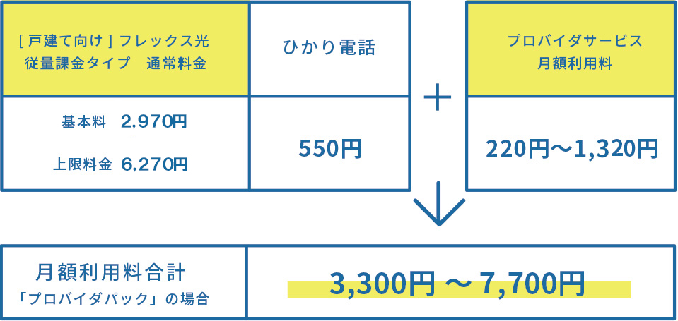 ※ インターネットのご利用にはフレックス光の契約に加え、プロバイダとの契約が必要です(別途月額利用料等がかかります)。
